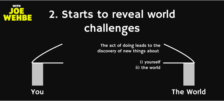 Lo and behold, what happens? By doing things, new people see what you’re doing and start conversations with you. They bring you new opportunities. You learn more.