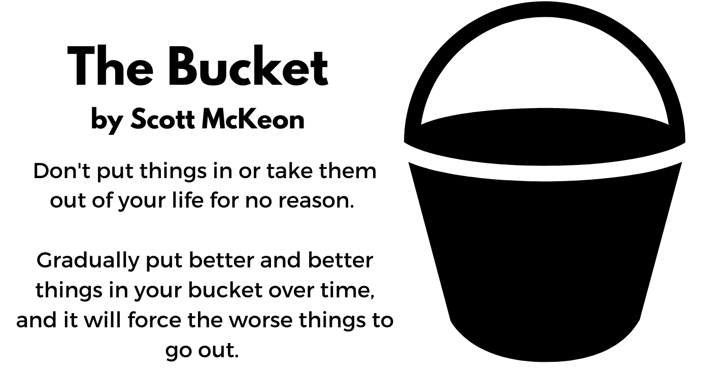 The bucket is a brilliant metaphor by my Doohat Labs Co-Founder Scott McKeon, in our book together on advice to eighteen-year-olds. It refers to being able to do a small number of activities at once, and if you imagine a bucket, being able to fill the bucket selectively.