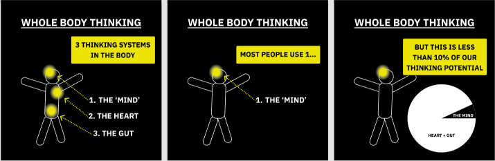 Wisdom merchants like Eckart Tolle, author of The Power of Now point out that there are three thinking centres in the body.